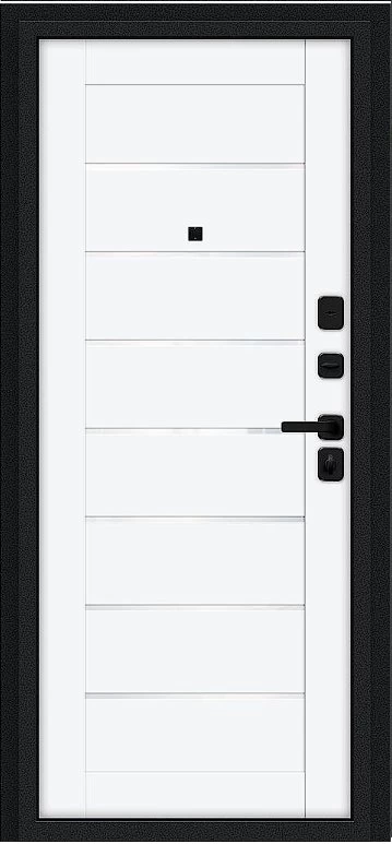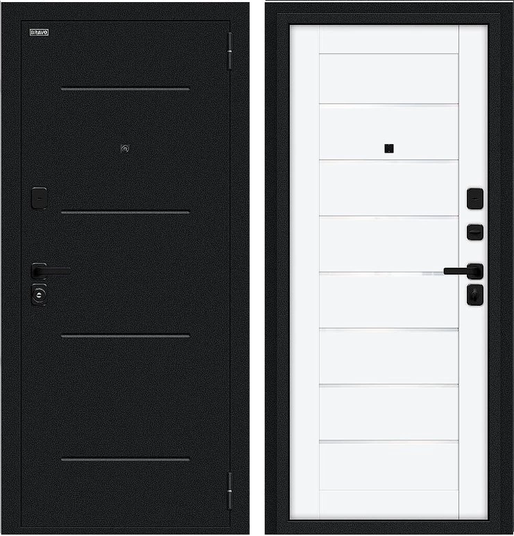 Надежная входная Дверь Браво Техно/SBlack Букле черное/White Silk премиум класса по цене 36 600 руб. Большая толщина стали защитит от проникновения в ваш дом, квартиру или коттедж. Используется очень качественная фурнитура: замки, цилиндры, ручки, защелки. Покрытие и отделка двери изготовлено под внимательным контролем производителя. Дверь имеет долгий срок службы и гарантию.